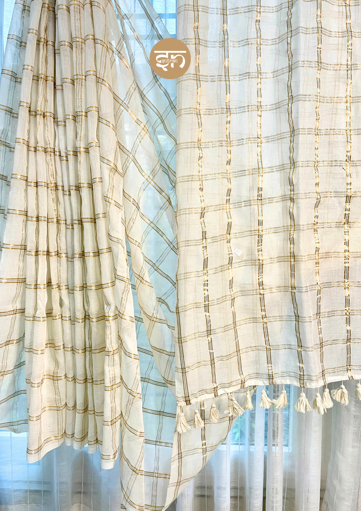 - The Zarisaaz Saree is meticulously crafted from soft mulcotton saree with fine zari sitar box, resulting in a woven fabric that feels incredibly light yet offers a satisfying structure and graceful drape. The body of the saree features a deep, luxurious rich white color spread all over, providing a sophisticated, warm, and highly versatile base. This rich hue is subtly elevated by simple, fine zari work scattered all over, which introduces a delicate glimmer and texture that is both refined and elegant. The saree’s focal point is its beautifully detailed pallu, where the zari work is concentrated to create a premium, eye-catching design that elevates the whole garment. The rich beige, combined with the luminous zari work, instantly conveys a look of rich, premium sophistication and timeless class. Light, easy to handle, and smooth to drape, this saree flows effortlessly, making it supremely comfortable for extended wear during long celebrations. It is an ideal choice for grand events, perfectly suited for a wedding function, a chic evening party, house-warming ceremonies, or special birthday events. Wearing the Zarisaazz instills a profound sense of quiet confidence and understated glamour, allowing you to feel grounded, beautiful, and poised in a saree that speaks of strong, classic elegance.
