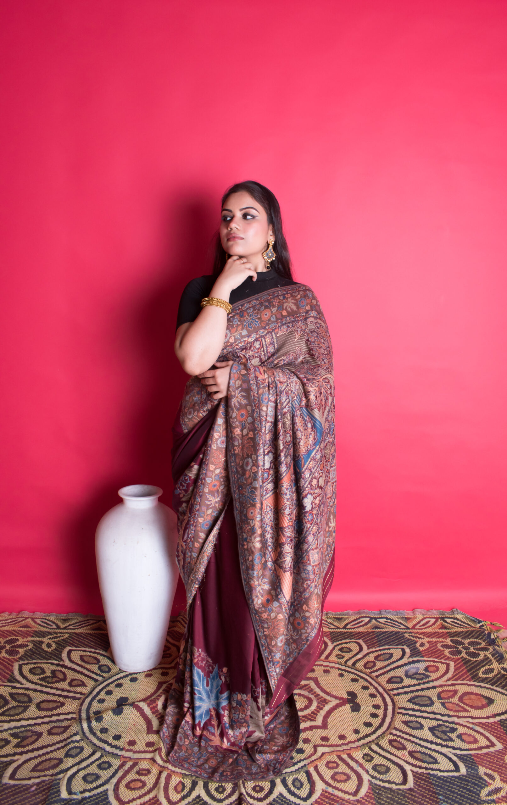 Elevate your collection with this exquisite Kani Silk Saree, a tribute to the timeless artistry of Kashmiri looms. Woven with precision and steeped in tradition, this piece is designed for those who views fashion as a form of art.