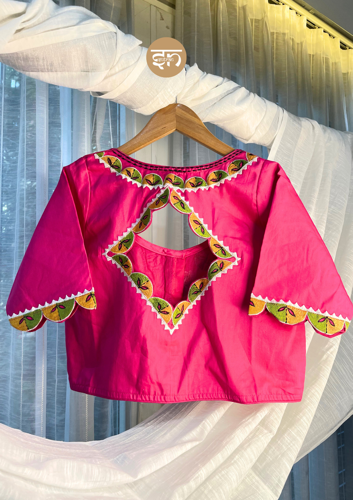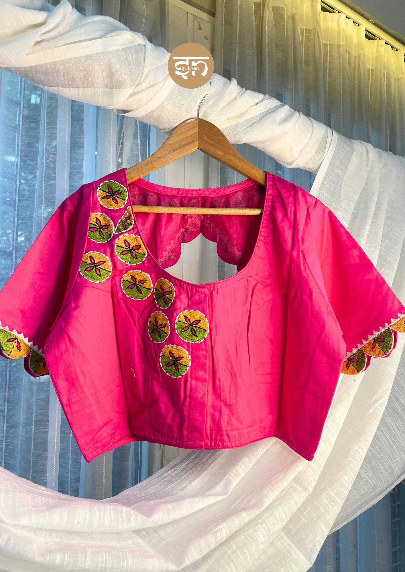 Paired with a hot pink Malai Cotton blouse with embroidered floral detailing.