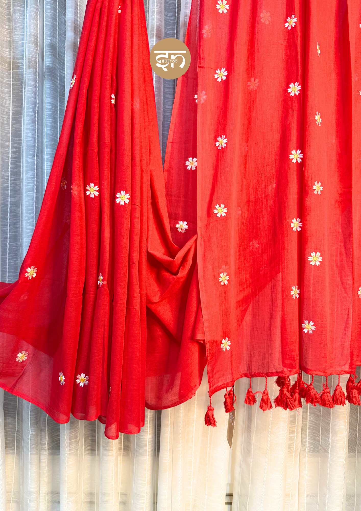The Truly Shiuli saree is meticulously crafted from signature soft, breathable Mul Cotton, ensuring it is incredibly light, airy, and exceptionally gentle on the skin for maximum comfort. This elegant piece is presented in a warm, inviting red color, a beautiful hue that evokes joy and subtle vibrancy. The fabric is delicately adorned with tiny Shiuli flower embroidery, a motif that adds a gentle, graceful, and feminine touch to the entire drape. To perfectly complete the aesthetic, the edges of the pallu feature soft red pompoms, harmoniously blending comfort, natural beauty, and inherent charm. Being as light as a feather and wonderfully easy to manage, this saree is designed to move effortlessly with you throughout your day. It is an ideal choice for versatile wear, including daily outings, office days, or relaxed festive evenings, when you desire to look perfectly styled without appearing as though you’ve made too much effort. The Truly Shiuli embodies simplicity and deep elegance; it offers just the right amount of grace for any day, reaffirming that true comfort is quiet but provides all the confidence you could ever need.